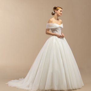 Dieses Brautkleid im Prinzessinnen-Stil mit Mikado-Rock überzeugt durch seine klare, strukturierte Linienführung und eine moderne, royale Ausstrahlung.