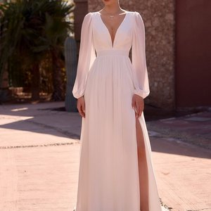 Im Brautmoden Outlet Köln findest du reduzierte Brautkleider, die durch Leichtigkeit, Qualität und zeitlose Eleganz überzeugen. Dieses fließende A-Linien-Brautkleid vereint romantische Details mit einer modernen, femininen Ausstrahlung.