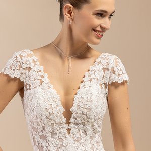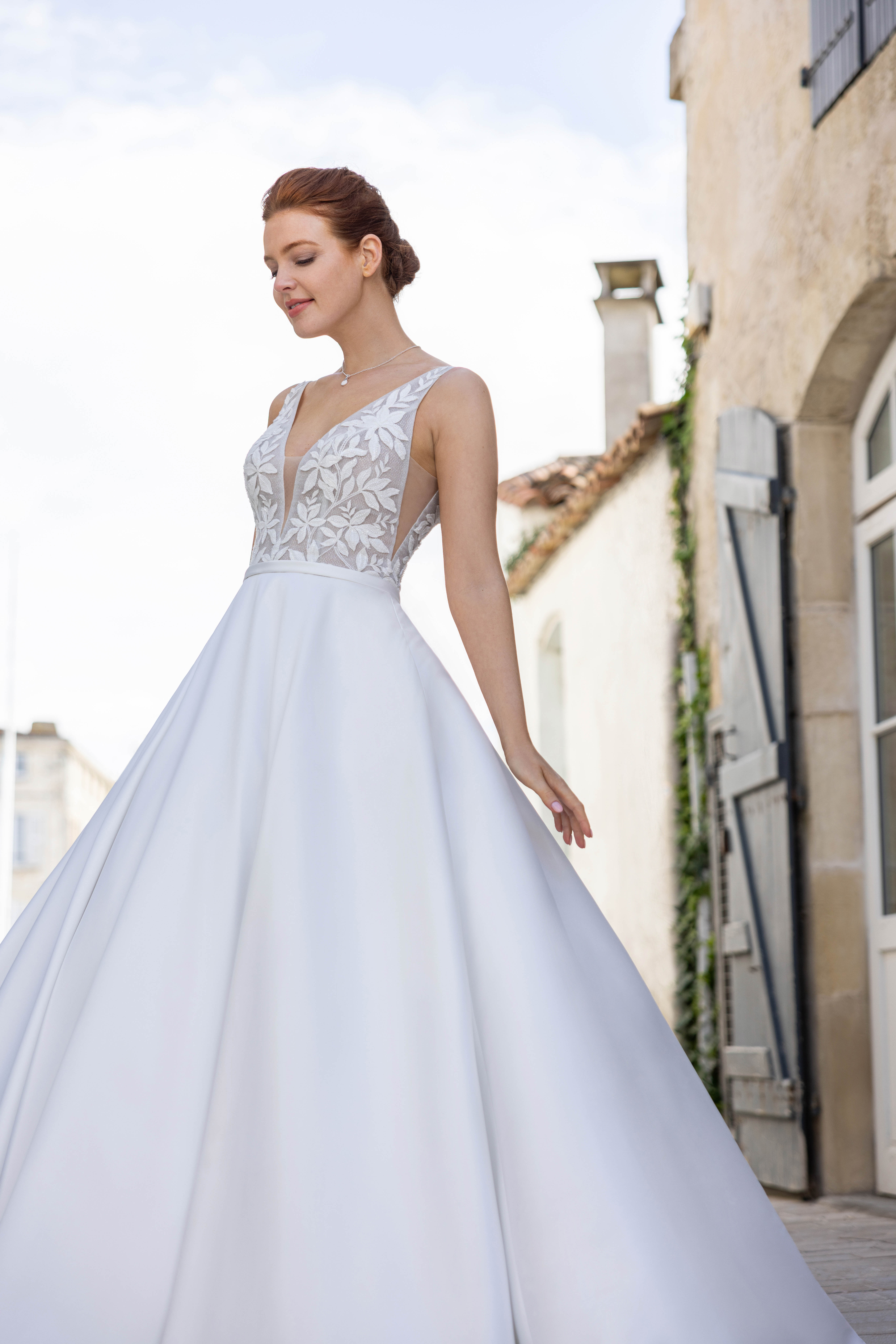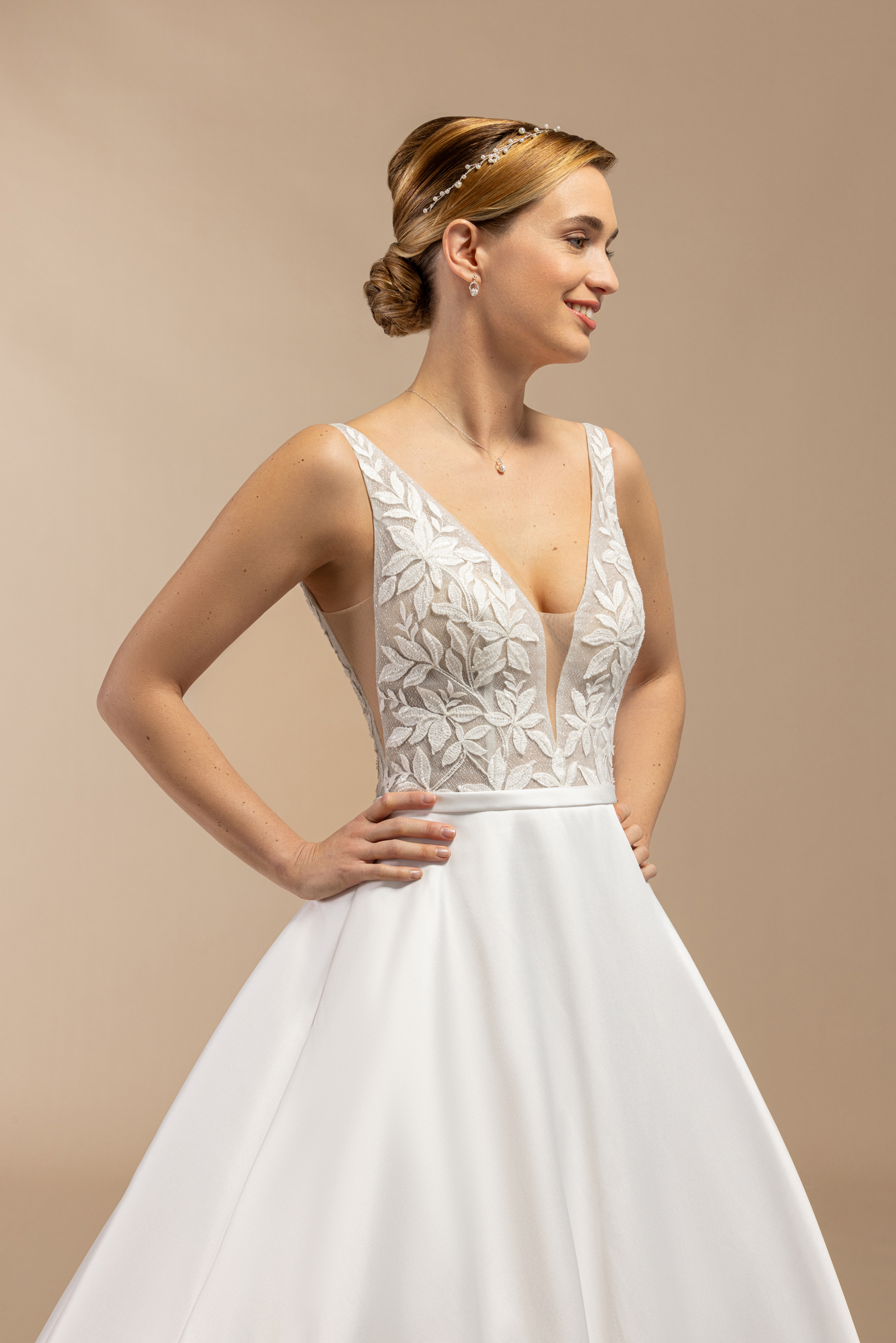 Ein Brautkleid für Bräute, die klare Eleganz lieben und auf feine, moderne Details nicht verzichten möchten.