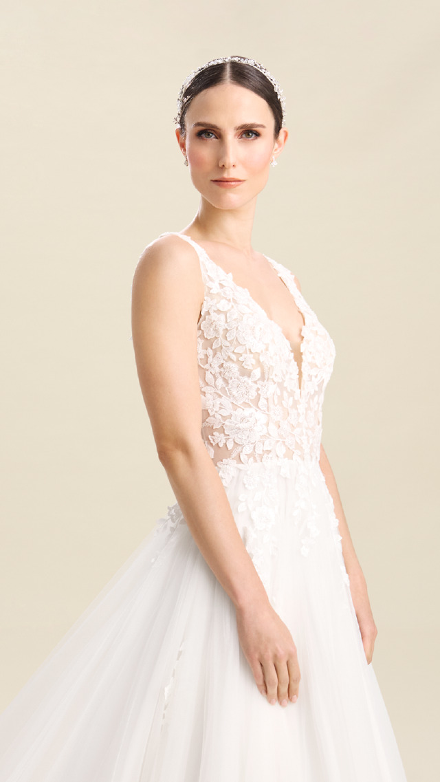 Reduzierte Brautkleider mit Stil findest du im Brautmoden-Outlet Köln – und dieses romantische A-Linien-Brautkleid aus der Selected-Kollektion von Bianco Evento ist ein echtes Highlight.