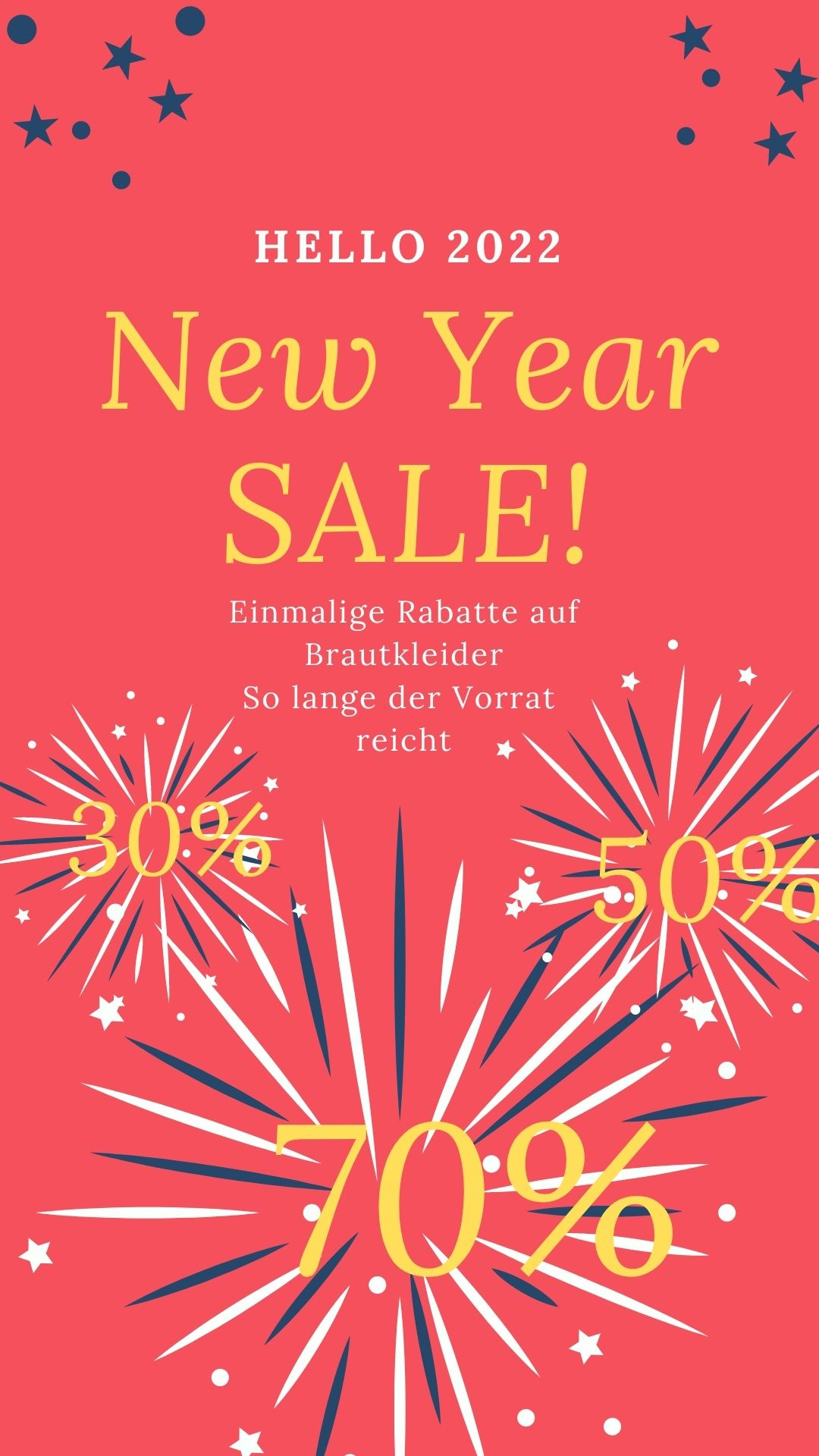 Macht jetzt schnell noch euren Termin bei uns und werdet direkt zu Beginn des neuen Jahres glücklich mit eurem Traumkleid zum Traumpreis.